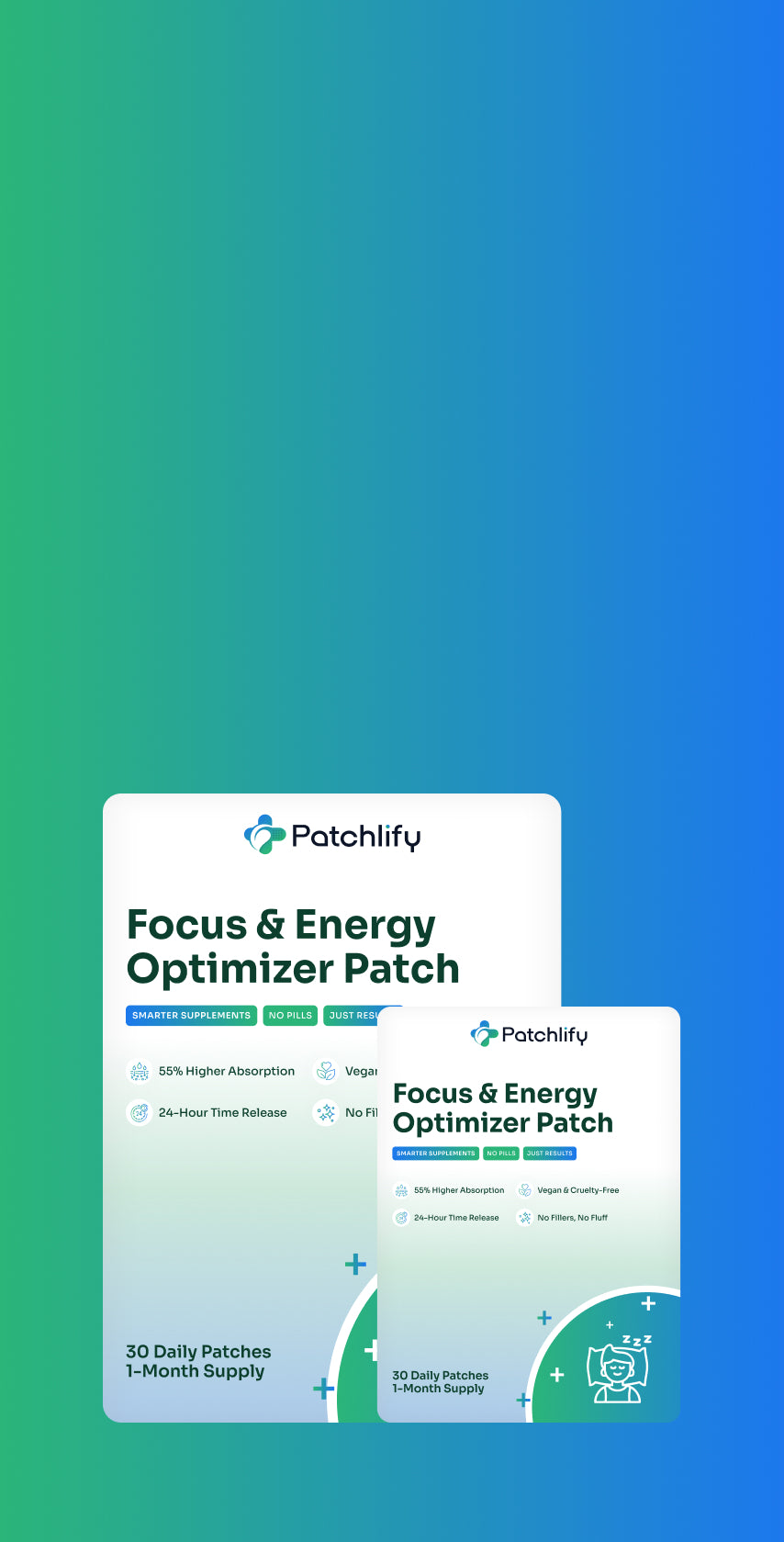 Every Patchlify patch is designed for real, measurable impact. With advanced transdermal delivery, clean ingredients, and up to 55% better absorption than pills, we make wellness effortless. No pills. No guesswork. Just better results, delivered through your skin.